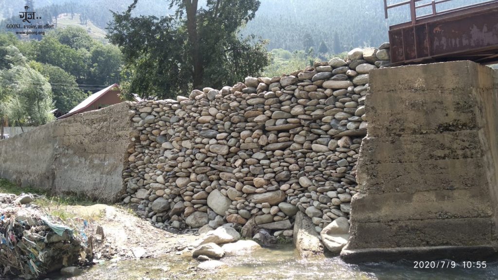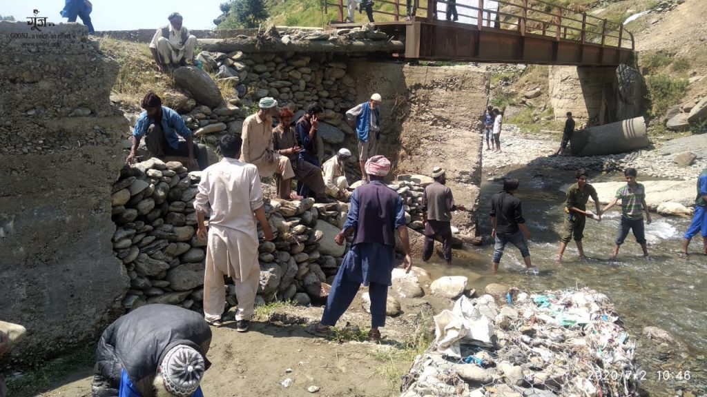 For the residents of Naghsari village in Kupwara district, Kashmir, the protection wall of the bridge, damaged in the flash floods two years ago, was a matter of concern. So, when Goonj visited their village, the locals expressed their interest to take up the repair of the bridge under Goonj’s ‘Dignity For Work’ initiative. Being the only road for three villages, it was used by the villagers to traverse from the main road to the villages and from there to their homes. Moreover, this was the only commutable road for locals going to the nearby woods to collect firewood and to the local mill (chakki). Determined to bring the bridge back to life, they toiled for two days by laying stones, one by one. And soon, the dilapidated structure was restored to its former glory. As for the 75 participants, they were ecstatic… to know their road back home would now be a safe one. However, their biggest takeaway was the realization that, with their capabilities, they could build things for their own community just the way they built structures for the urban dwellers. The Naghsari residents are daily wagers who often travelled to Kupwara and Kalaroos regions for work. While some of them were engaged in the apple orchards of Kashmir, others were engaged as helpers, construction workers and loading labourers. But this year, with the lockdown things were different. Thus, for many of them, the Rahat Kits of essentials rewarded by Goonj were like an answered prayer.