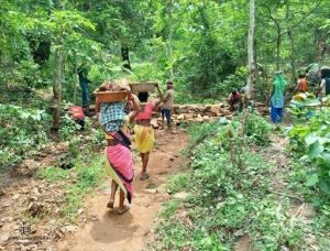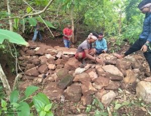 Located 13 km away from the Block headquarters in Rayagada district, Dalmeridi village in Odisha is home to 20 tribal families. For its residents, every year with the coming of rains, the sight of gushing rainwater from the hills making its way into the village pond has become a common sight. However, as the pond was getting buried with sediments, thereby disrupting the irrigation process, it became a matter of concern for the families. Though an air of helplessness engulfed them initially, after the community meeting with Team Goonj, the locals were inspired towards the building of two gully plugs (check dams built to prevent soil erosion) in the way of the flowing water. The families worked under our ‘Dignity For Work’ initiative to build two gully plugs. Today, as the result of their collective efforts, the people of Dalmeridi are able to use the pond for domestic purposes apart from being able to channelize the water for irrigating their land. Moreover, having done their part, the villagers were able to request the local authorities now towards the deepening of the pond.